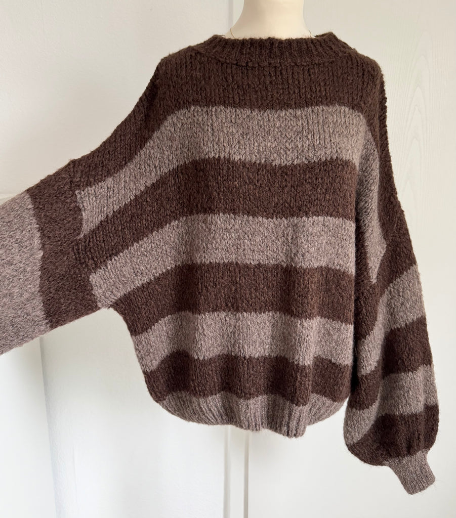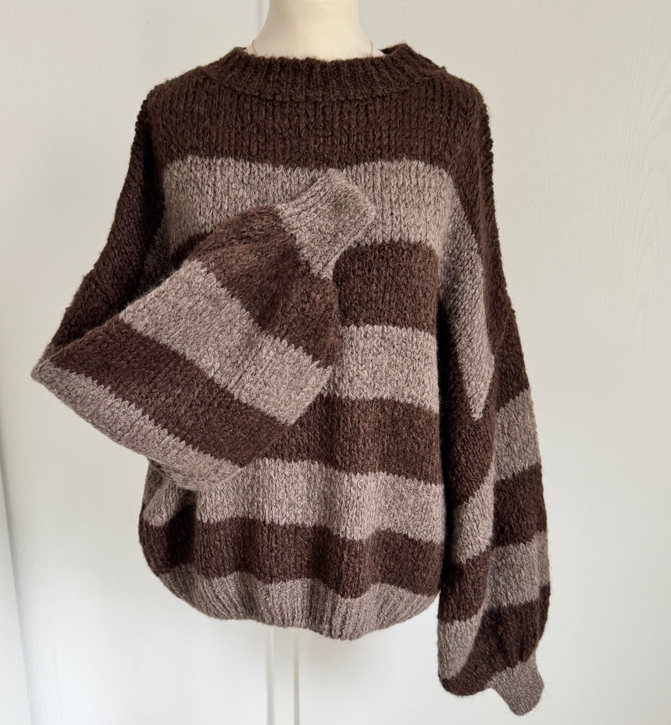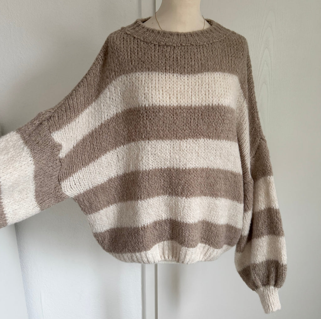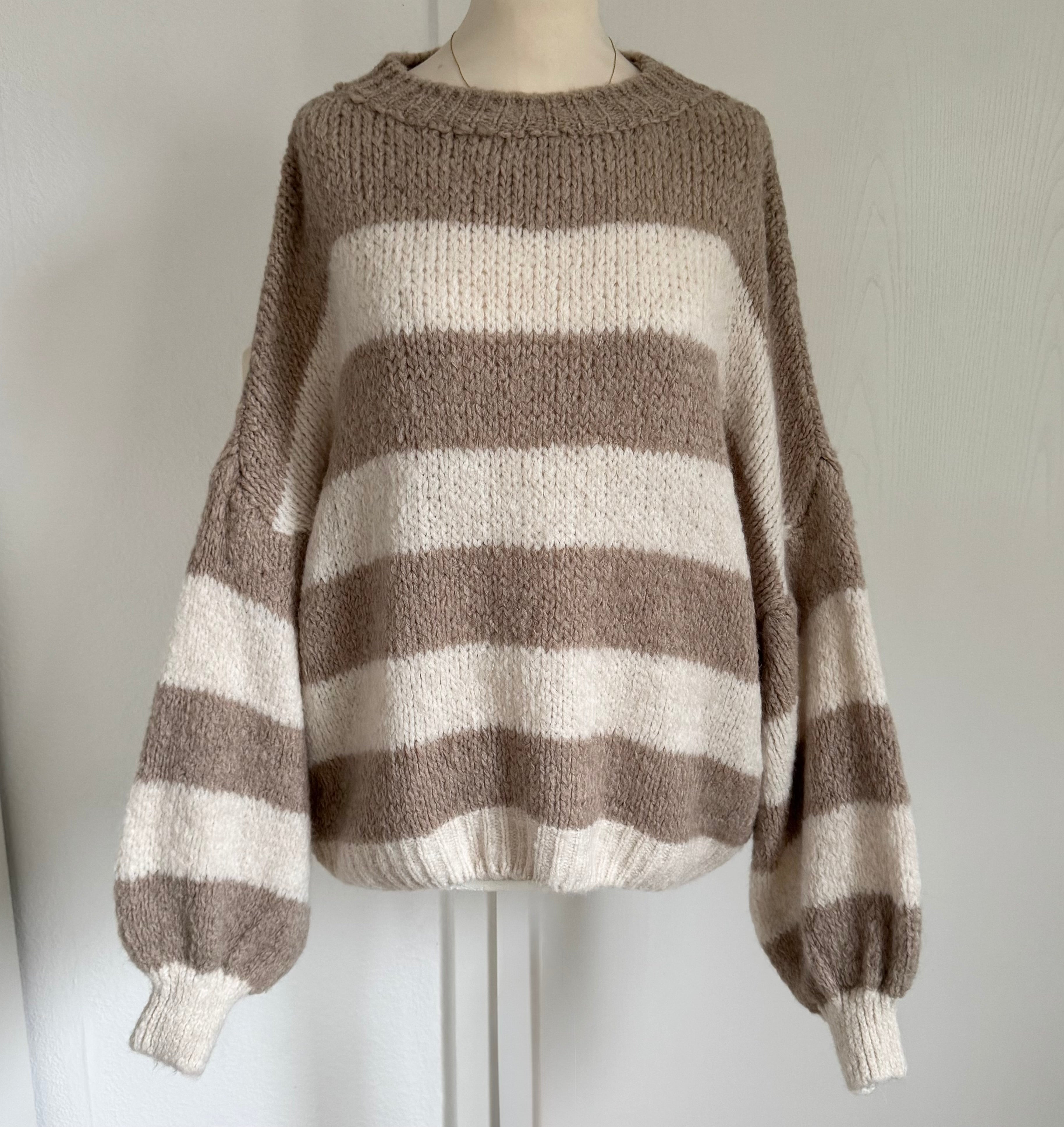 Strickpullover BIG STRIPES - Lighttaupe/Creme