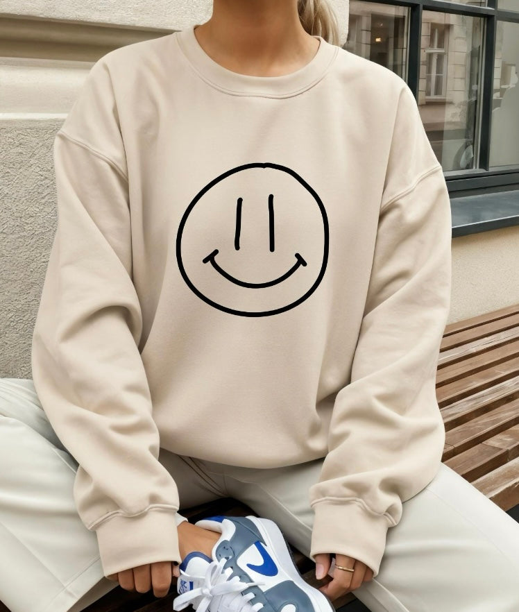 Schönes oversized Sweat-Shirt aus Biobaumwolle mit Smiley auf der Vorderseite.