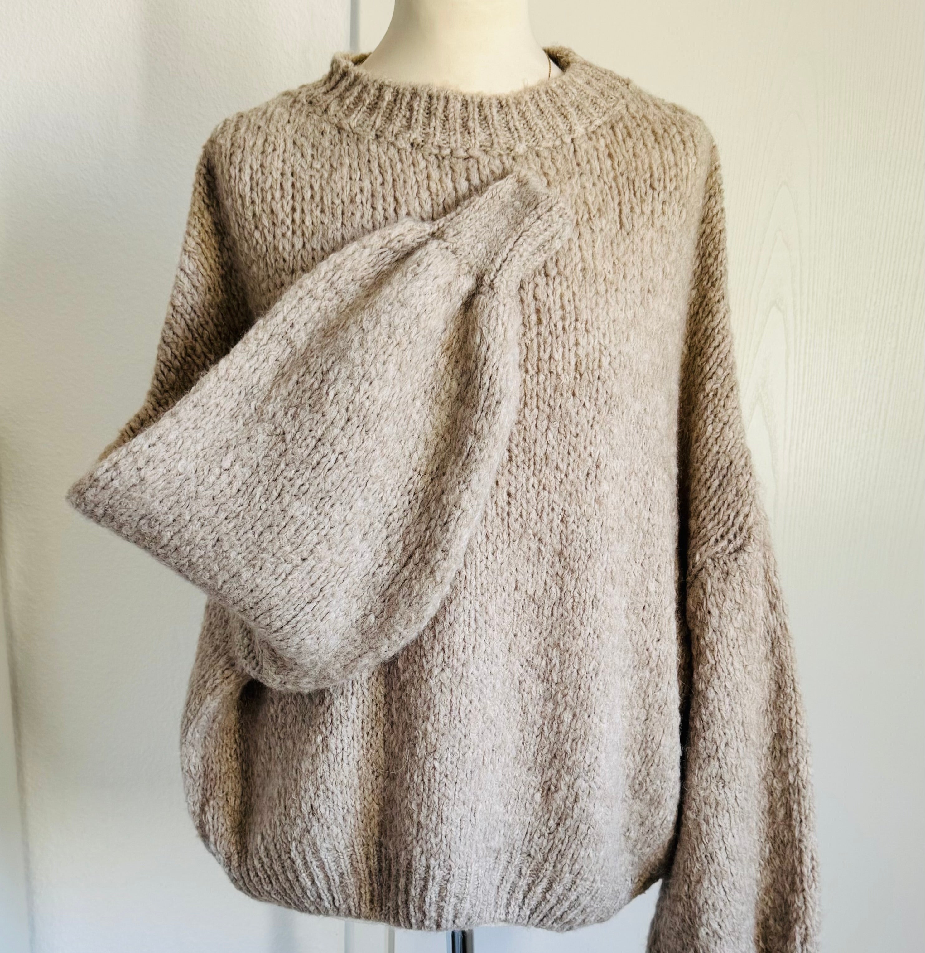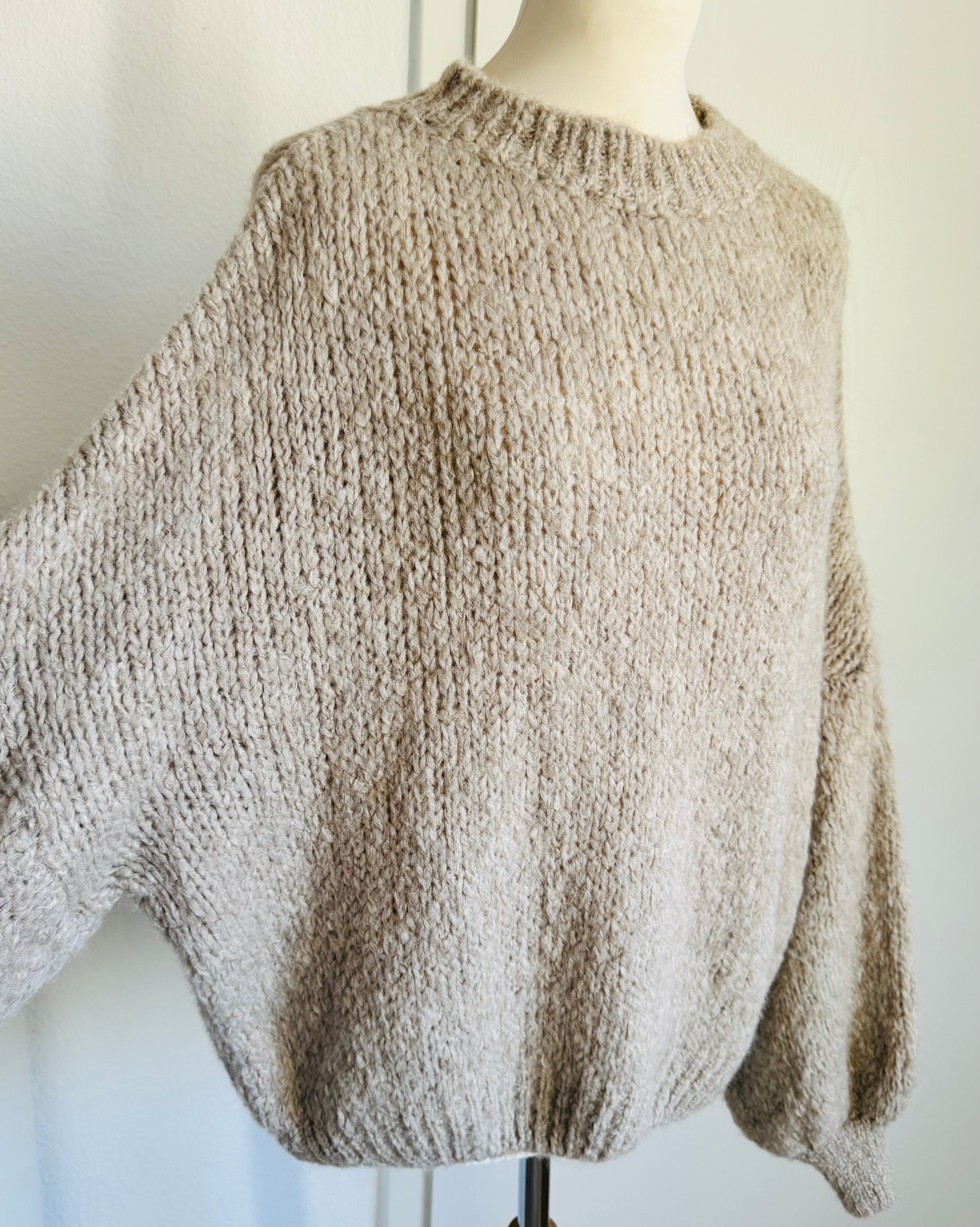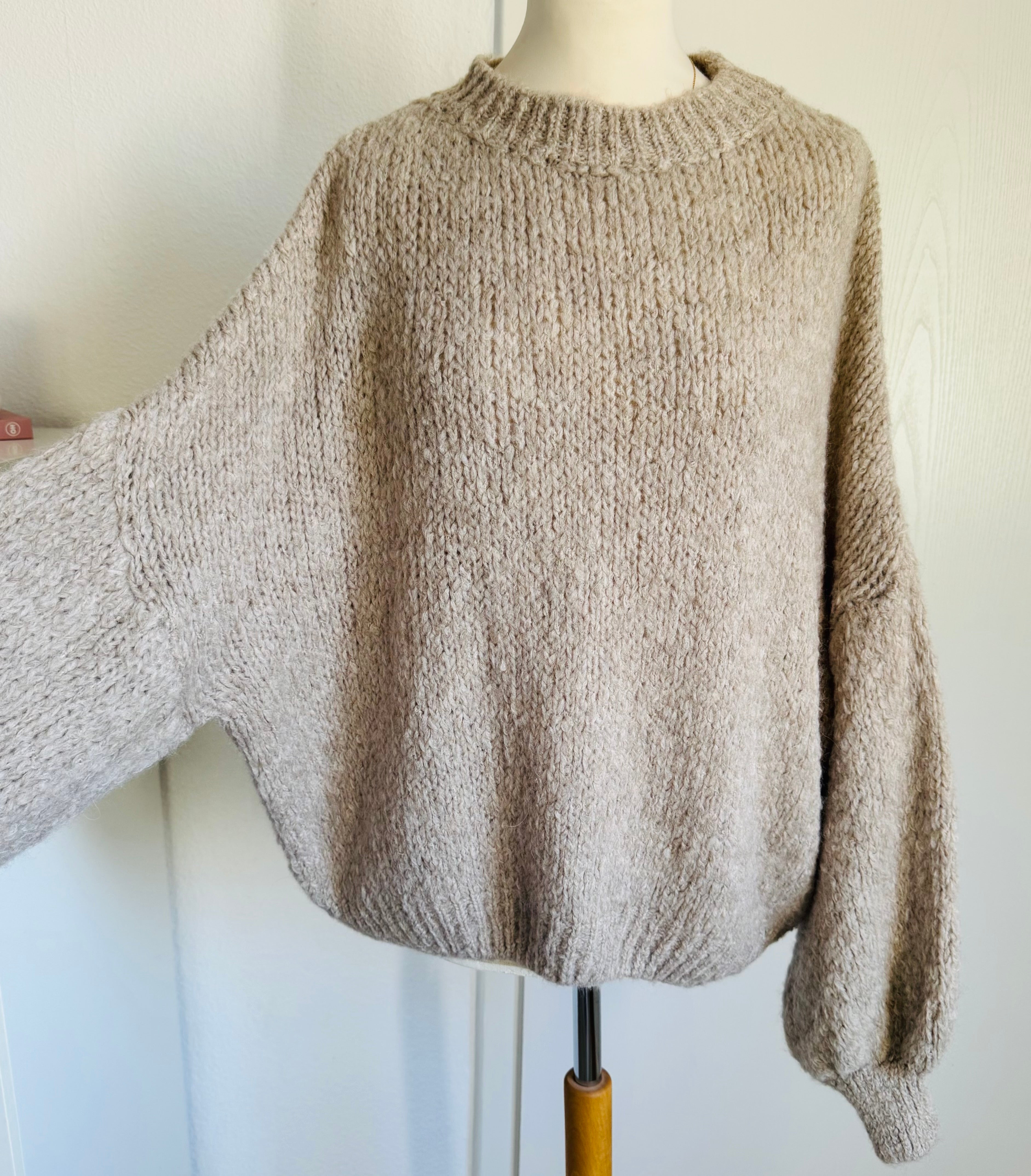 Strickpullover Ballonärmel flauschiger Grobstrick - Lighttaupe