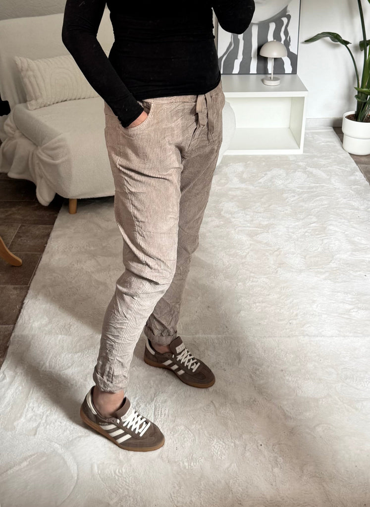 Lässige Pants im Joggstyle mit seitlichen Eingriffstaschen. Das Material ist weich und angenehm.