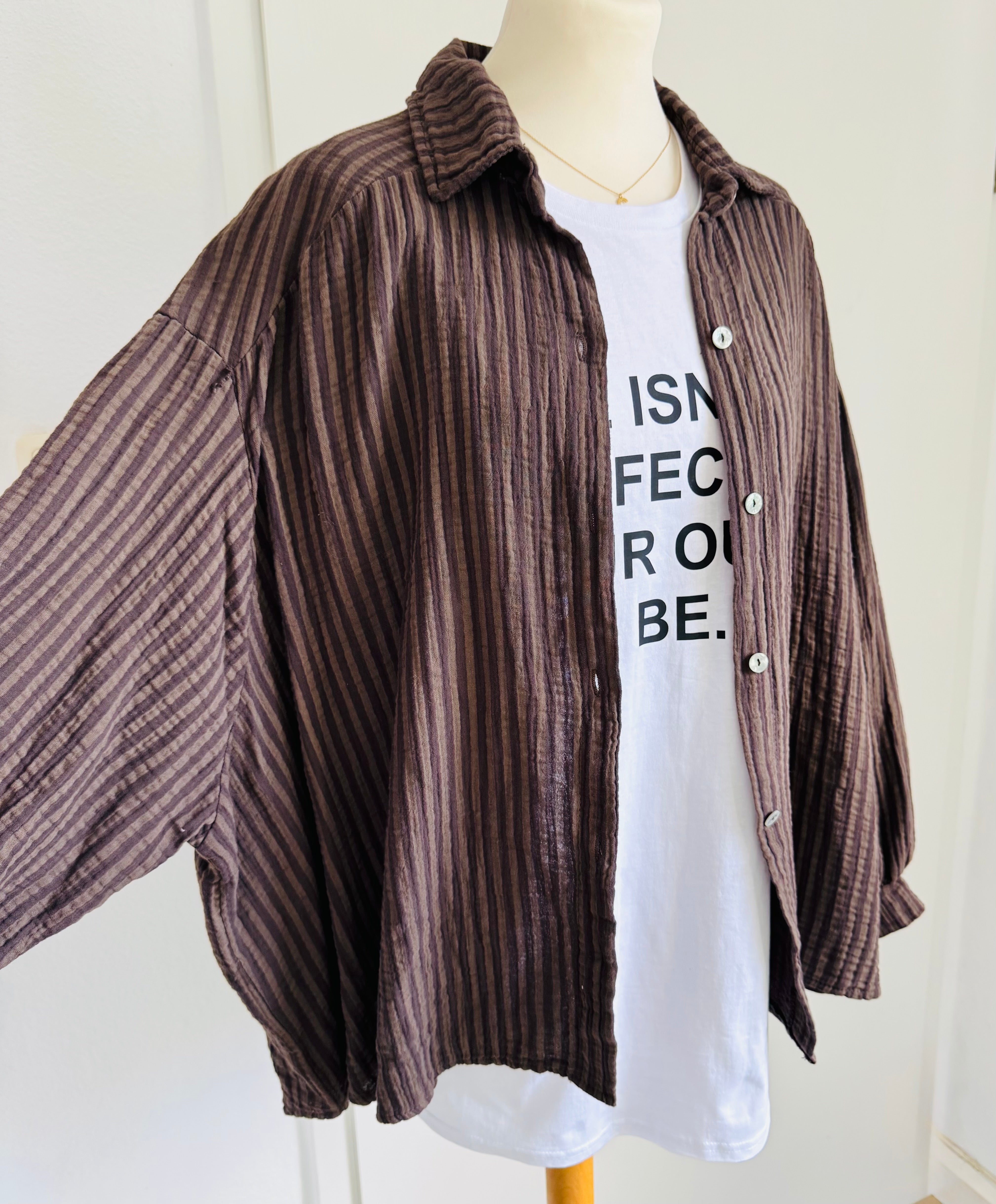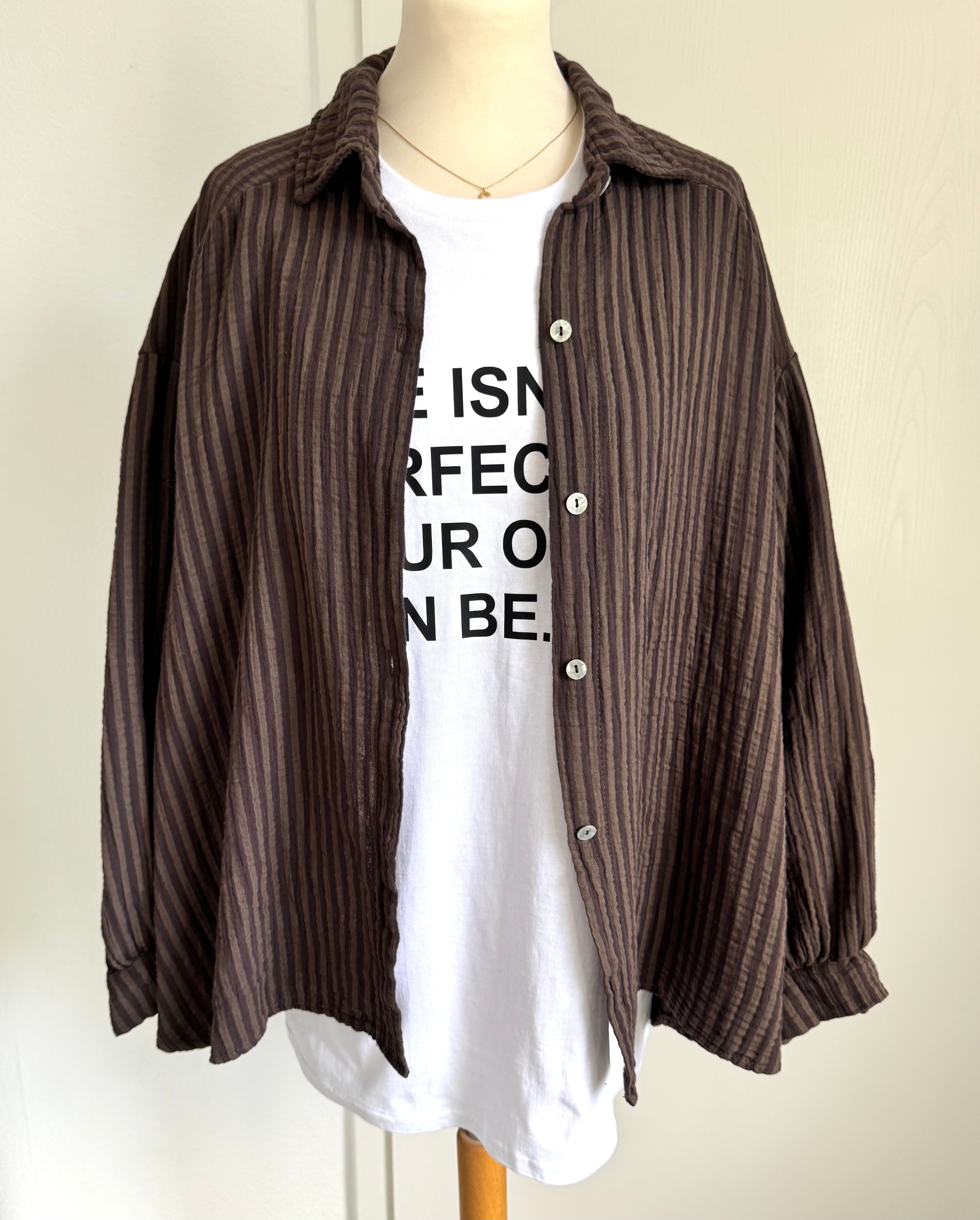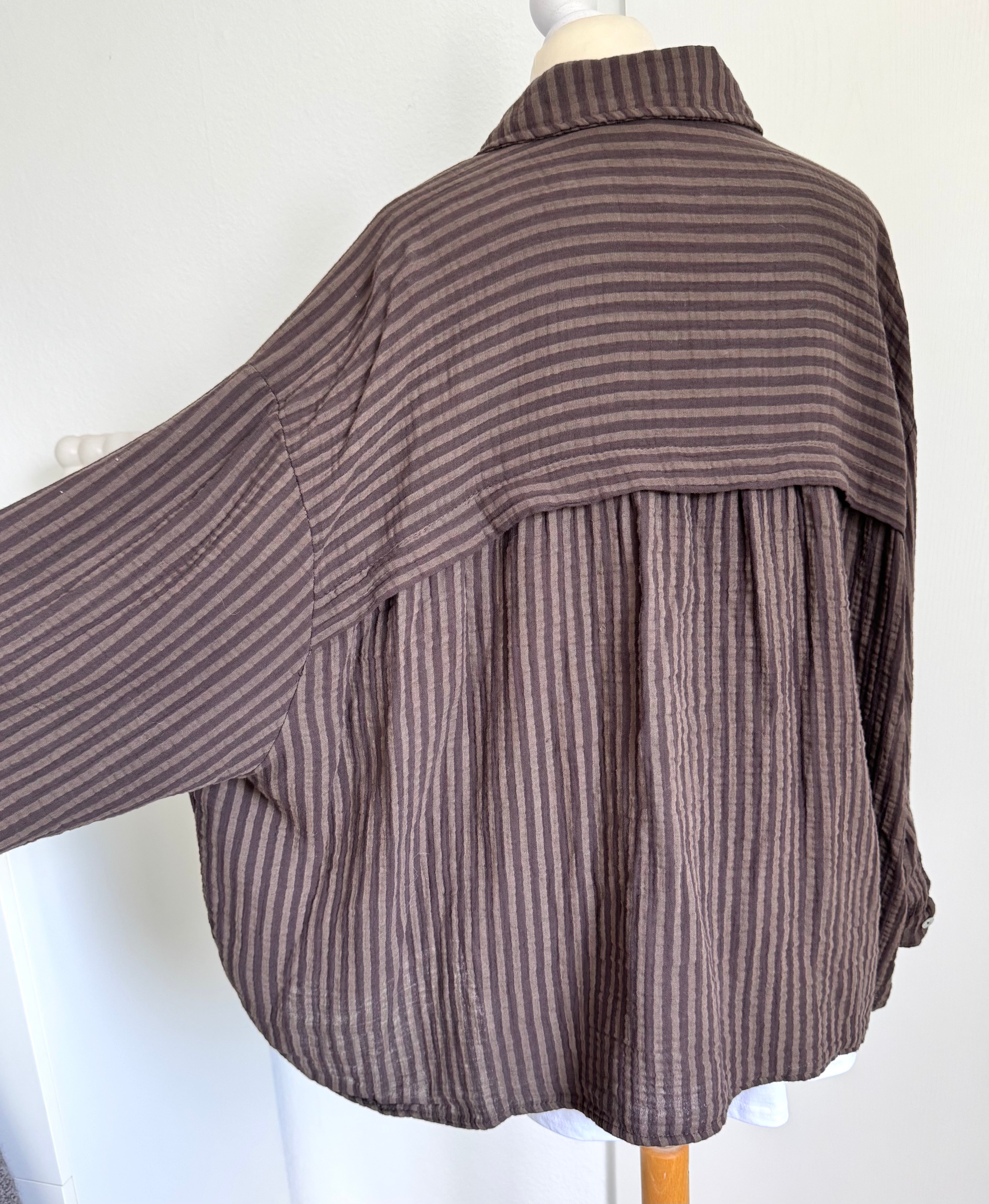 Musselinbluse oversized kurz STRIPES - Espressobraun