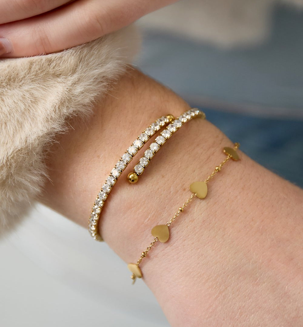 Armspange mit Zirkoniasteinen Edelstahl - Gold und Silber