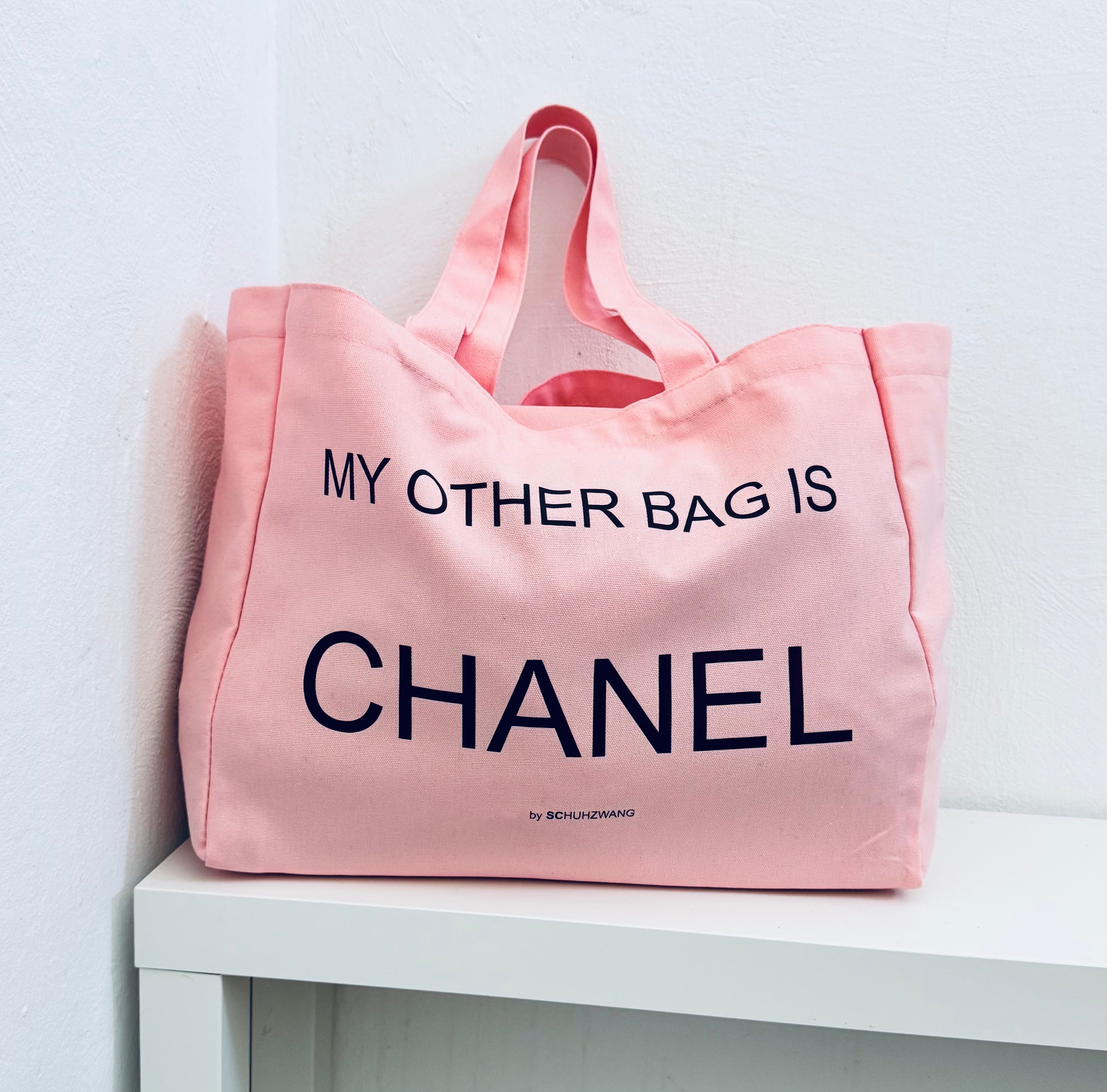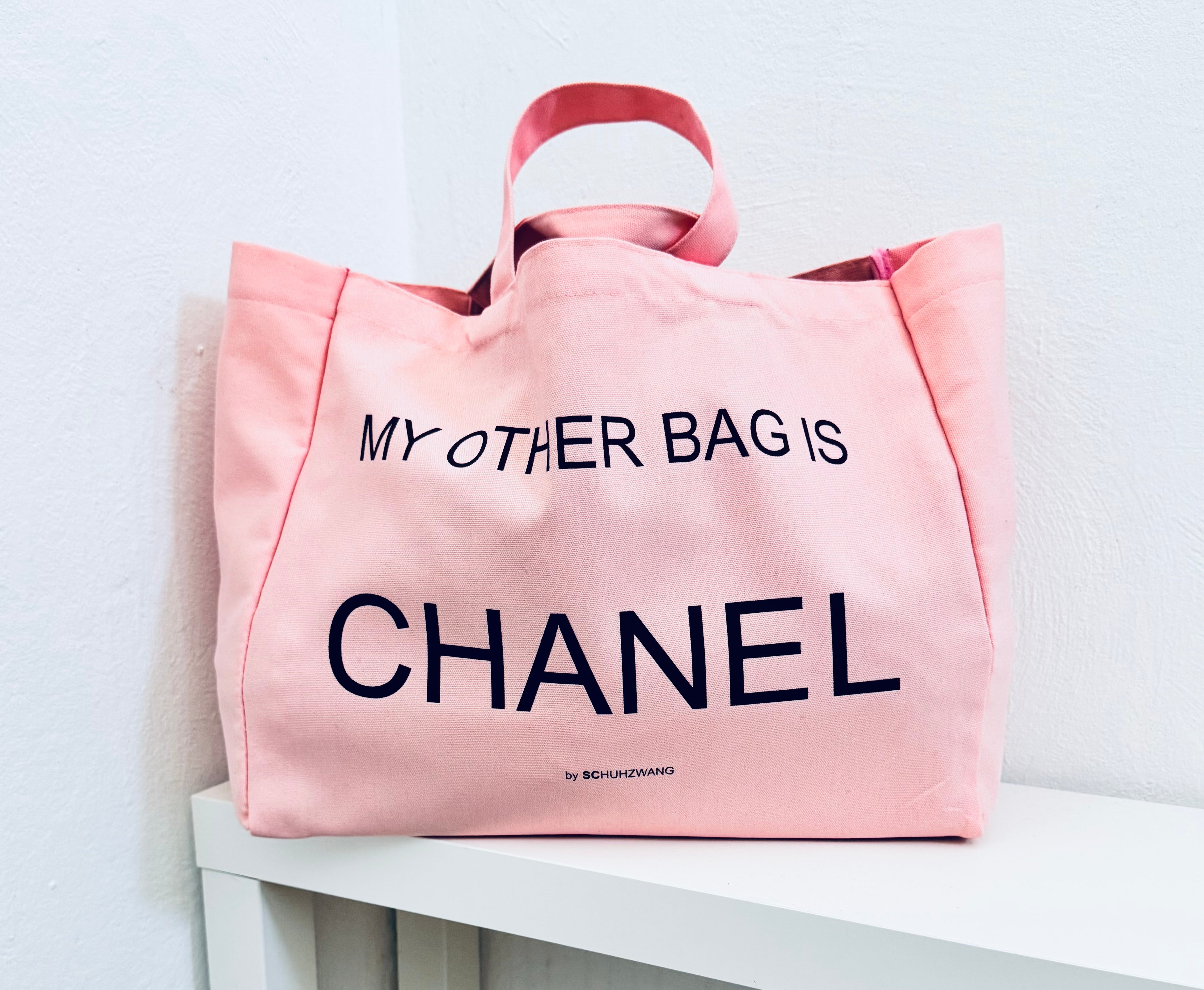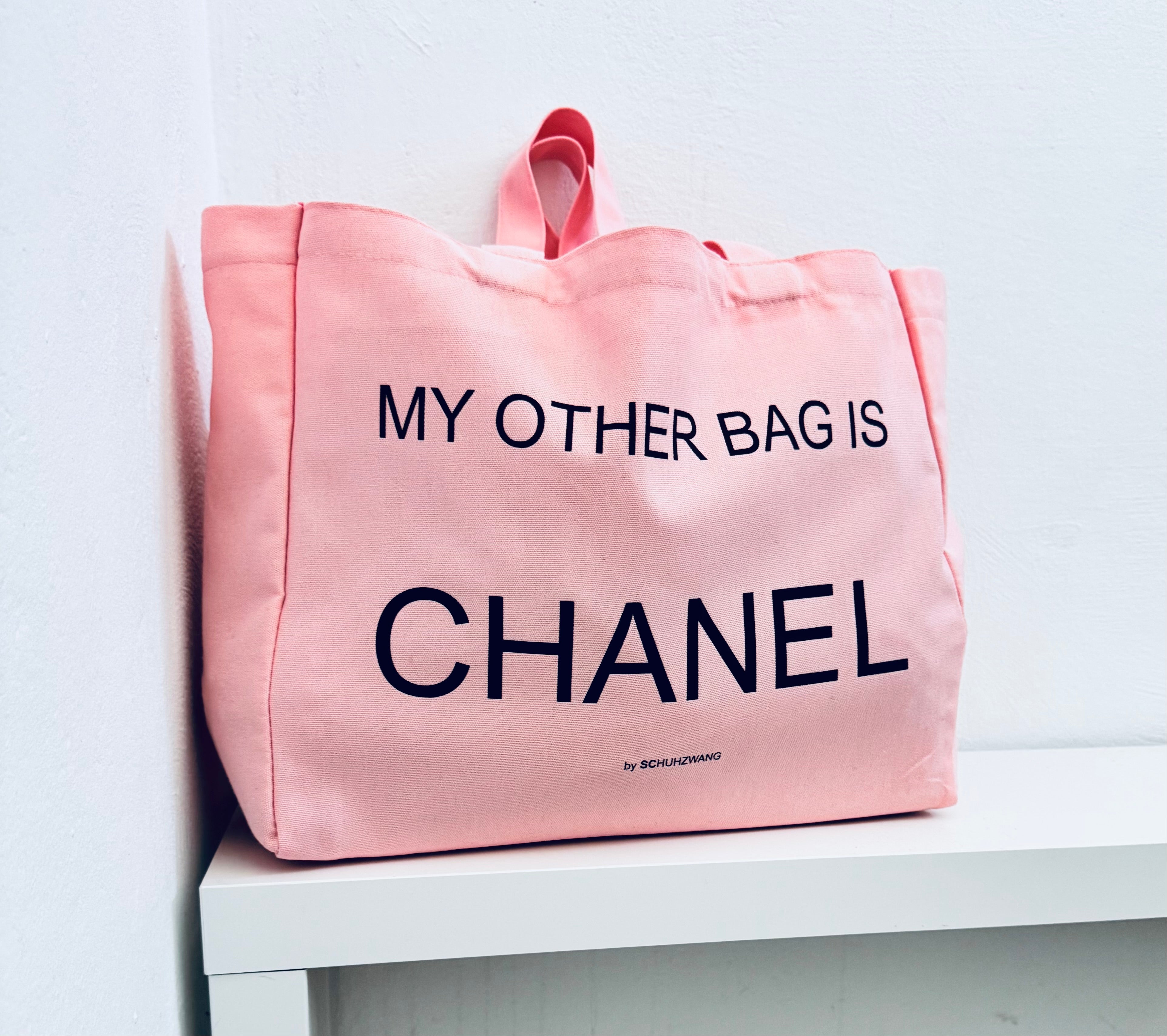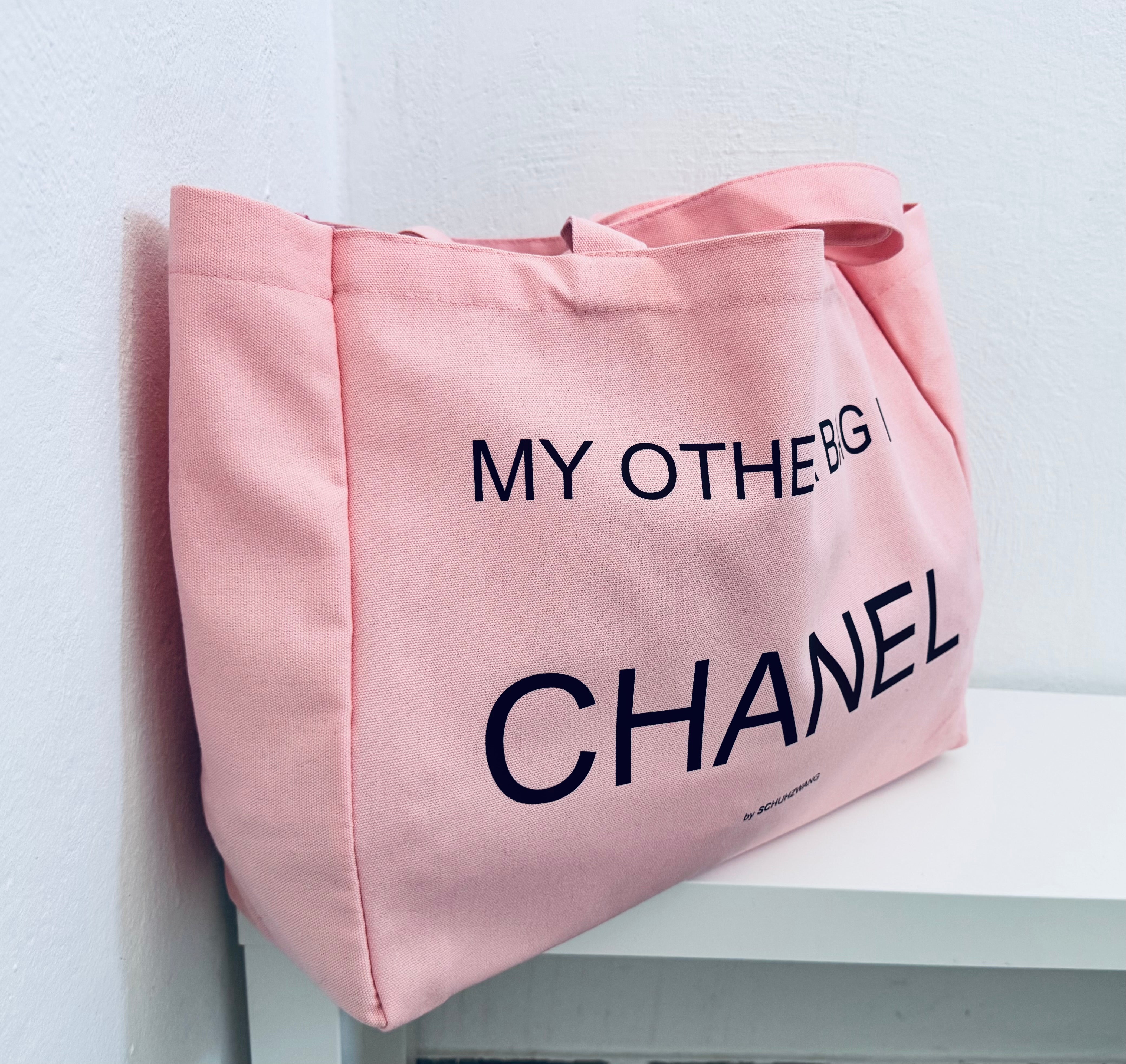 Canvas-Shopper XXL „My other bag is…“ Aufdruck Statement - Rosé/Chocolate