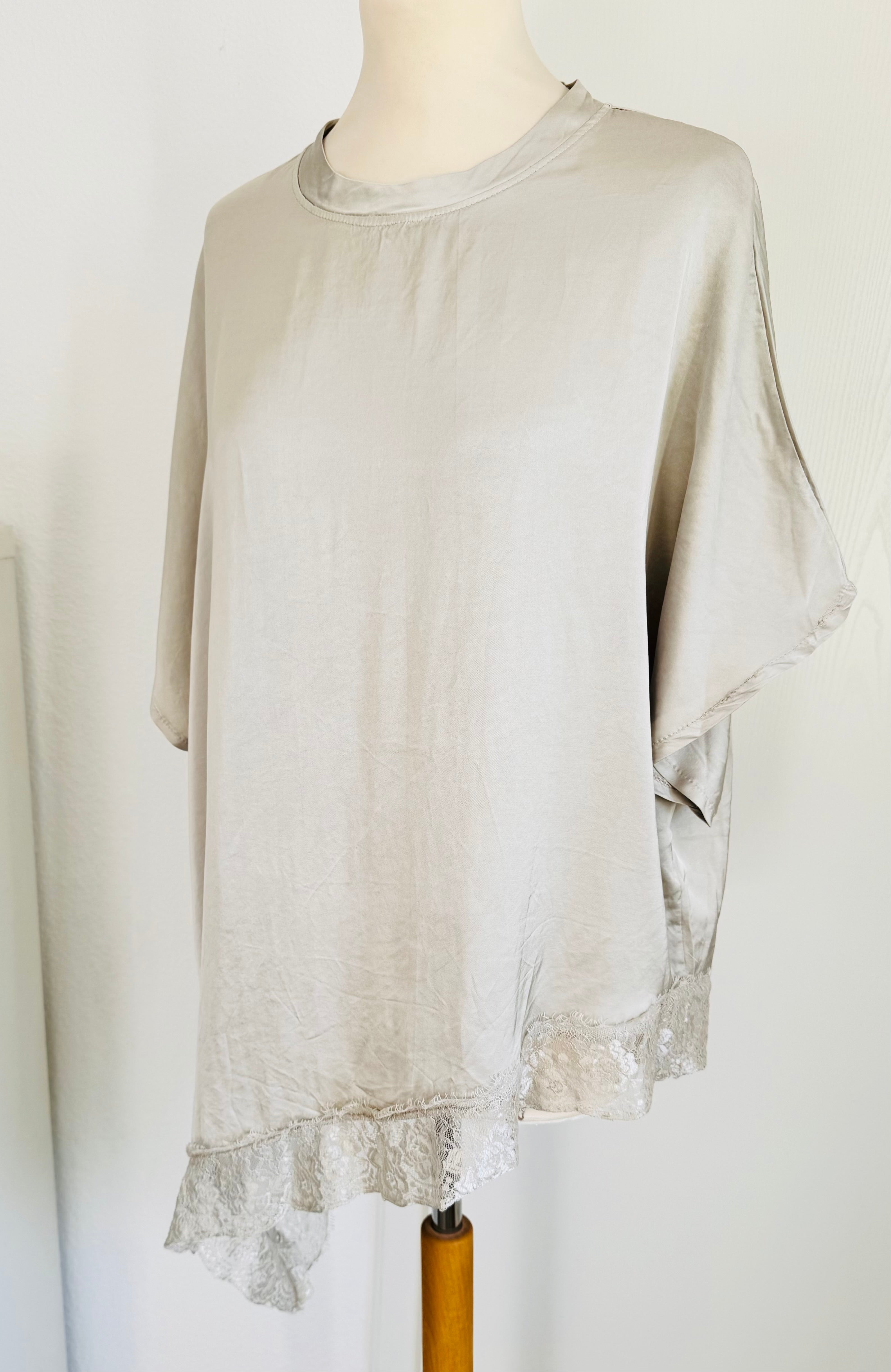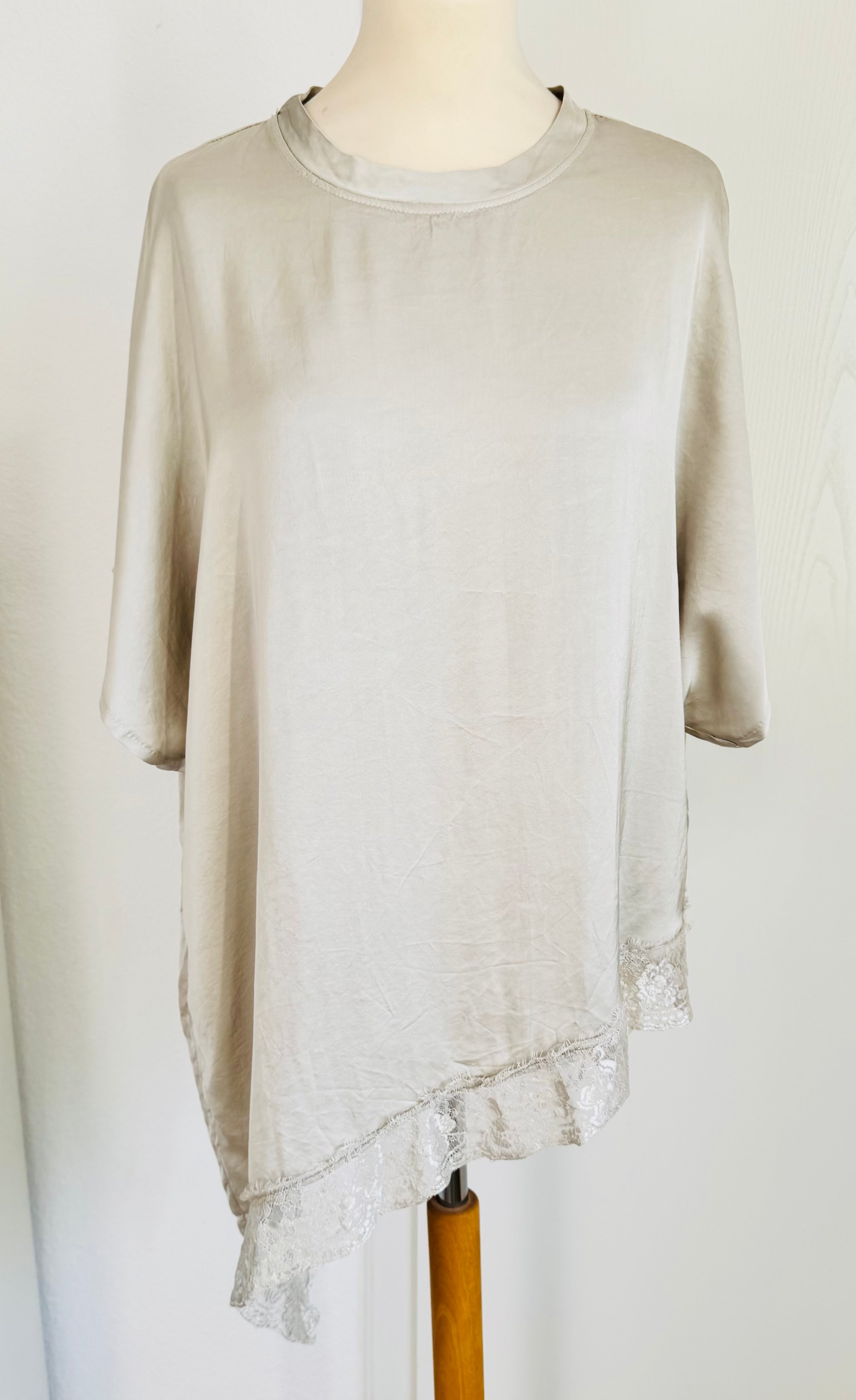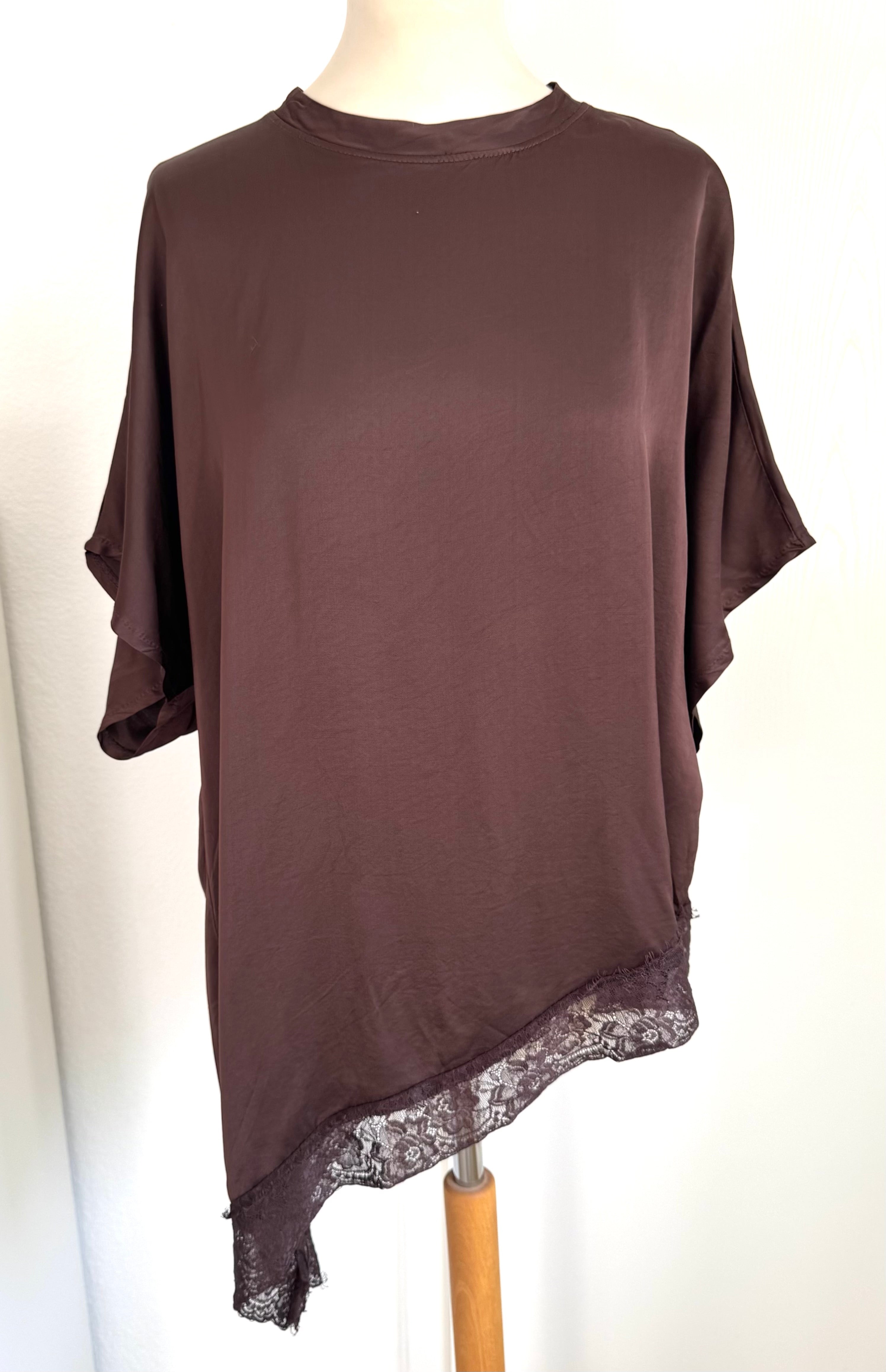 Edles asymethrisches Satinshirt mit Spitzen am Saum.