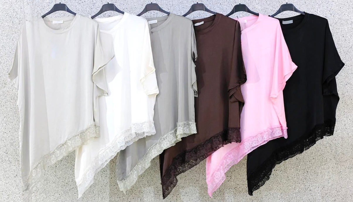 Satin-Shirt asymethrisch mit Spitze - verschiedene Farben