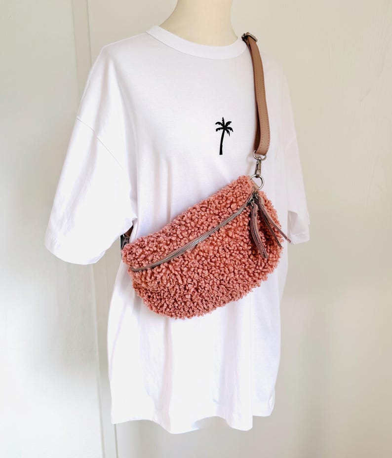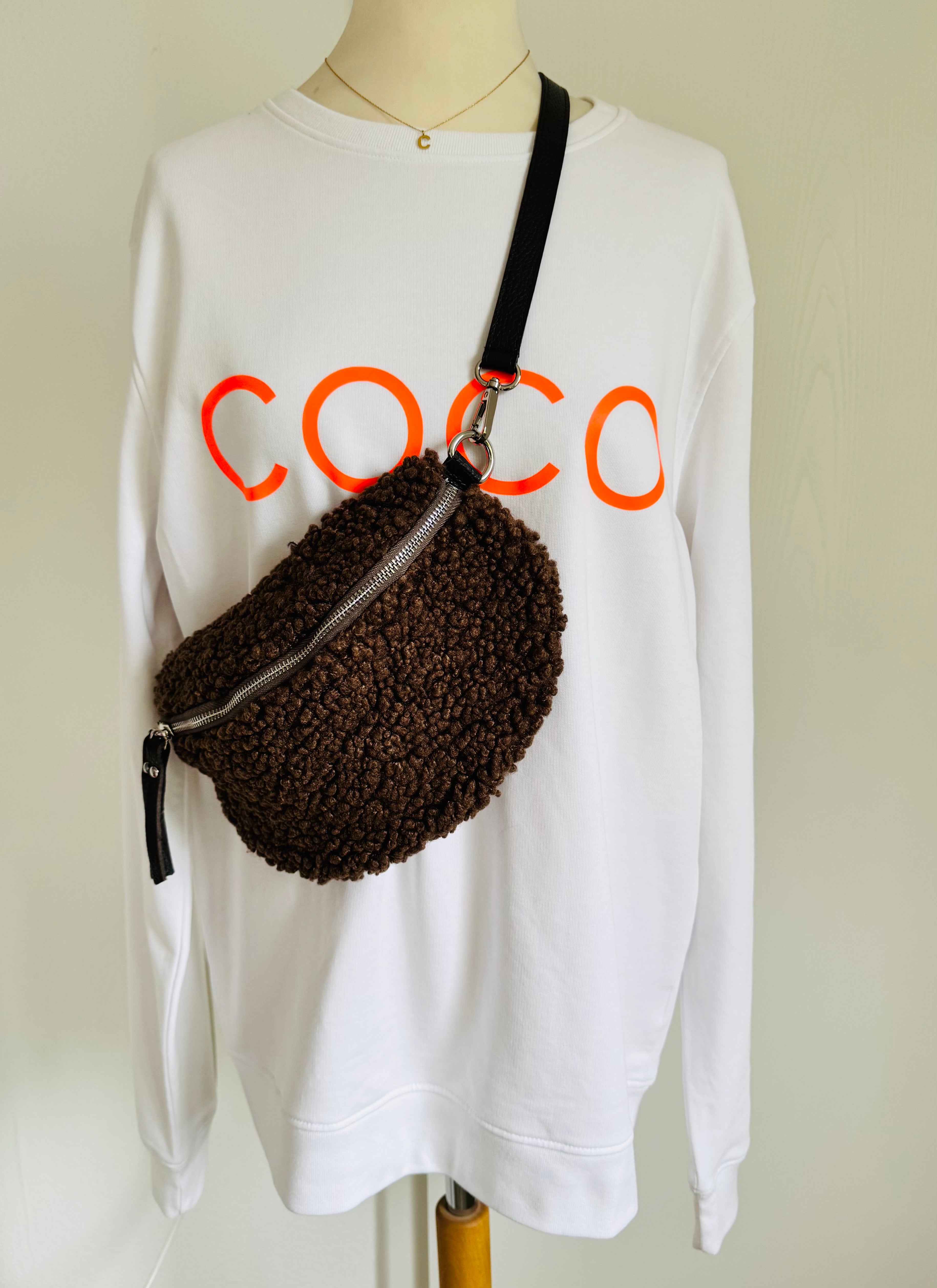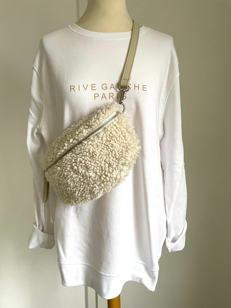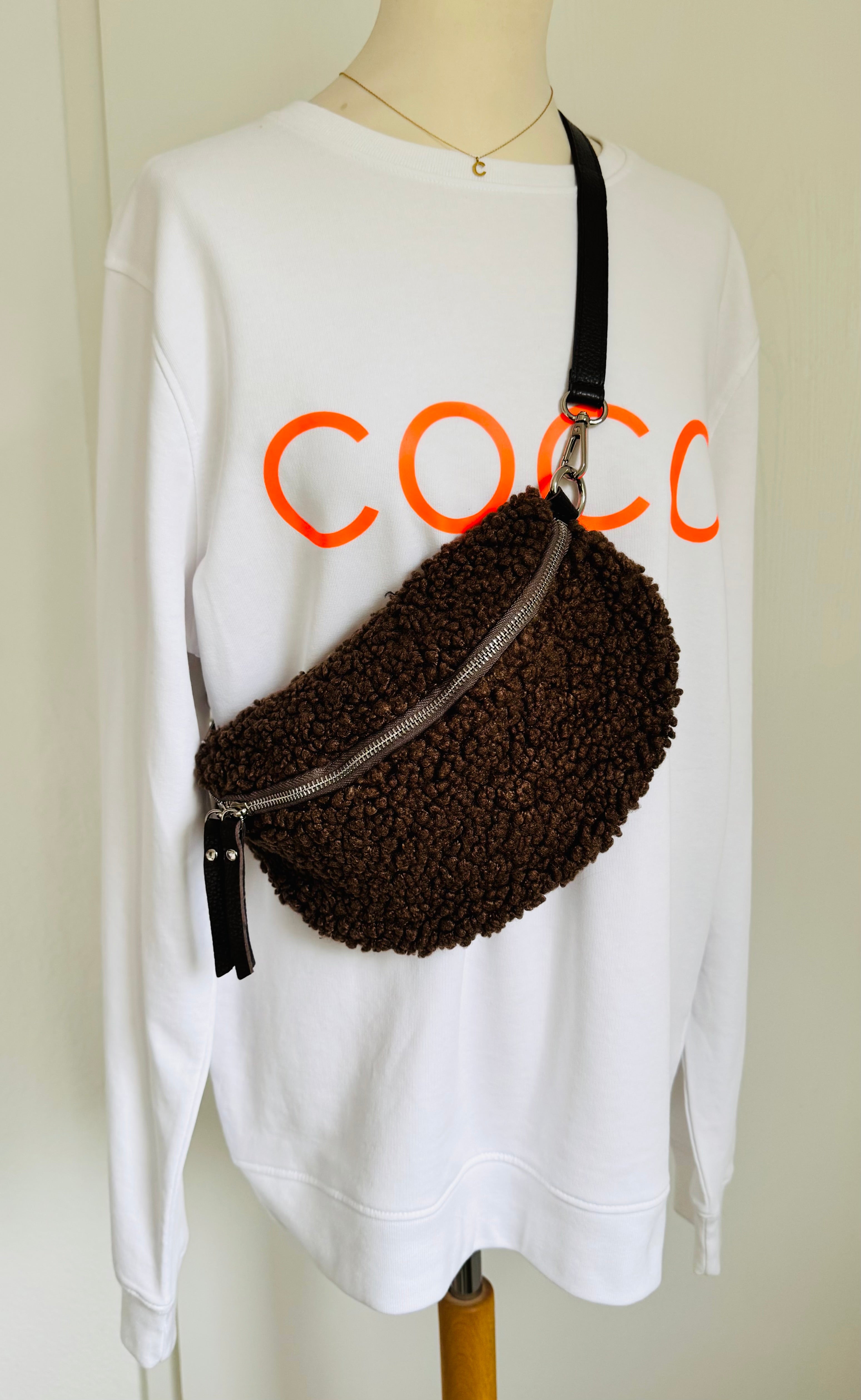 Crossbody Teddyplüsch-Tasche mit verstellbarem Strap aus Echtleder.