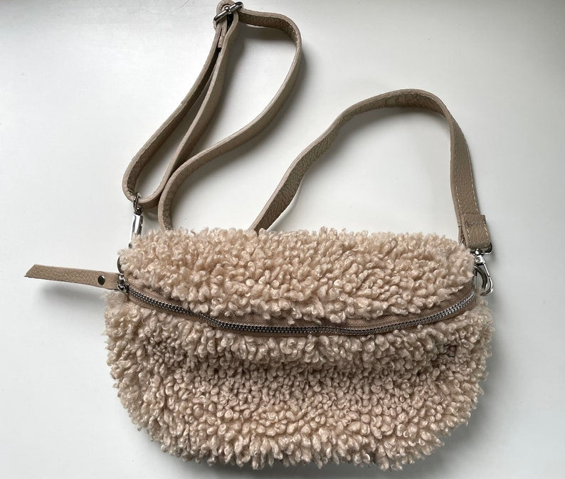 Crossbody Bag Teddyfell mit Lederstrap - verschiedene Farben