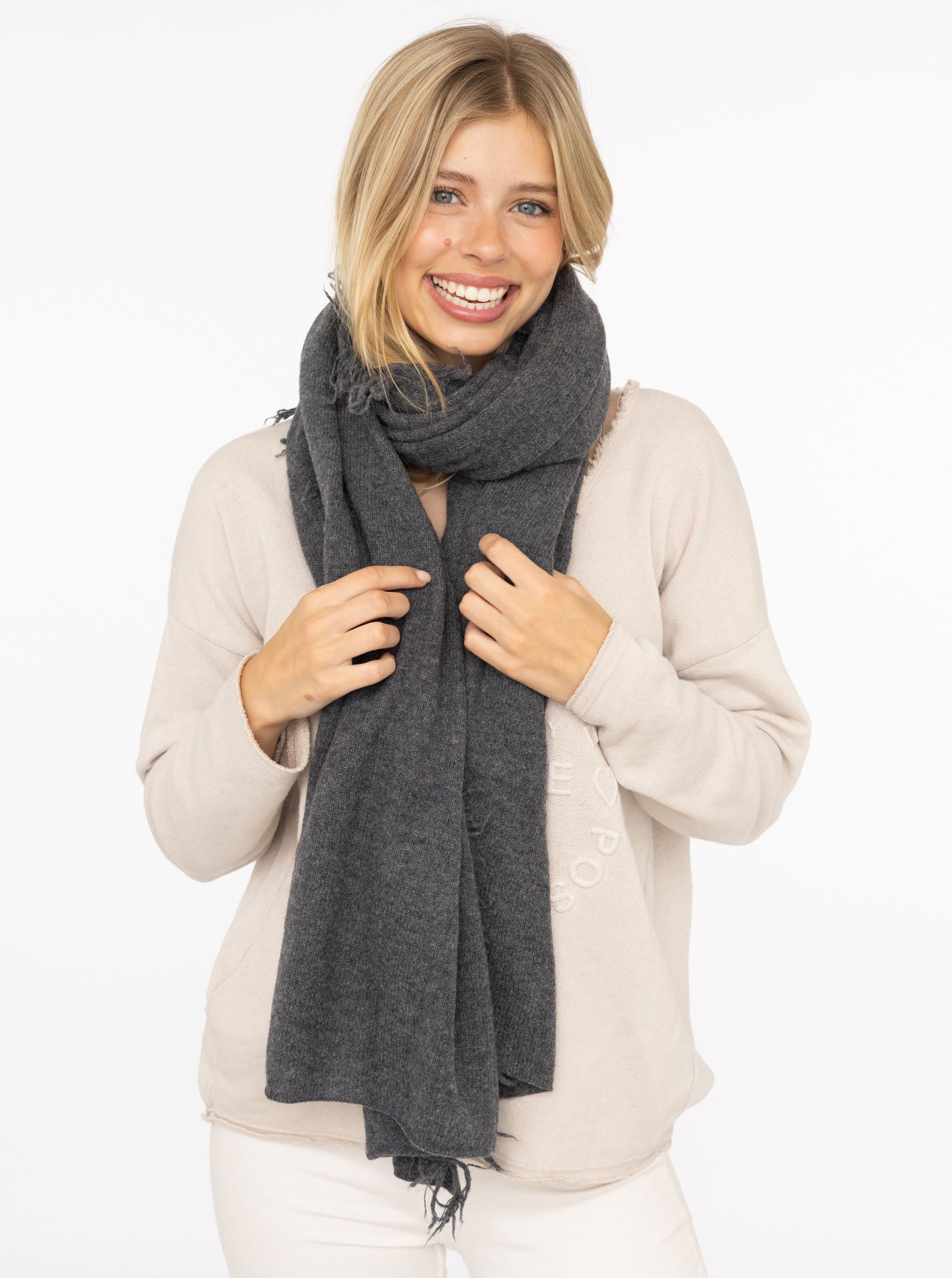 XXL Fransen-Schal 100% Kaschmir - verschiedene Farben - ZWILLINGSHERZ