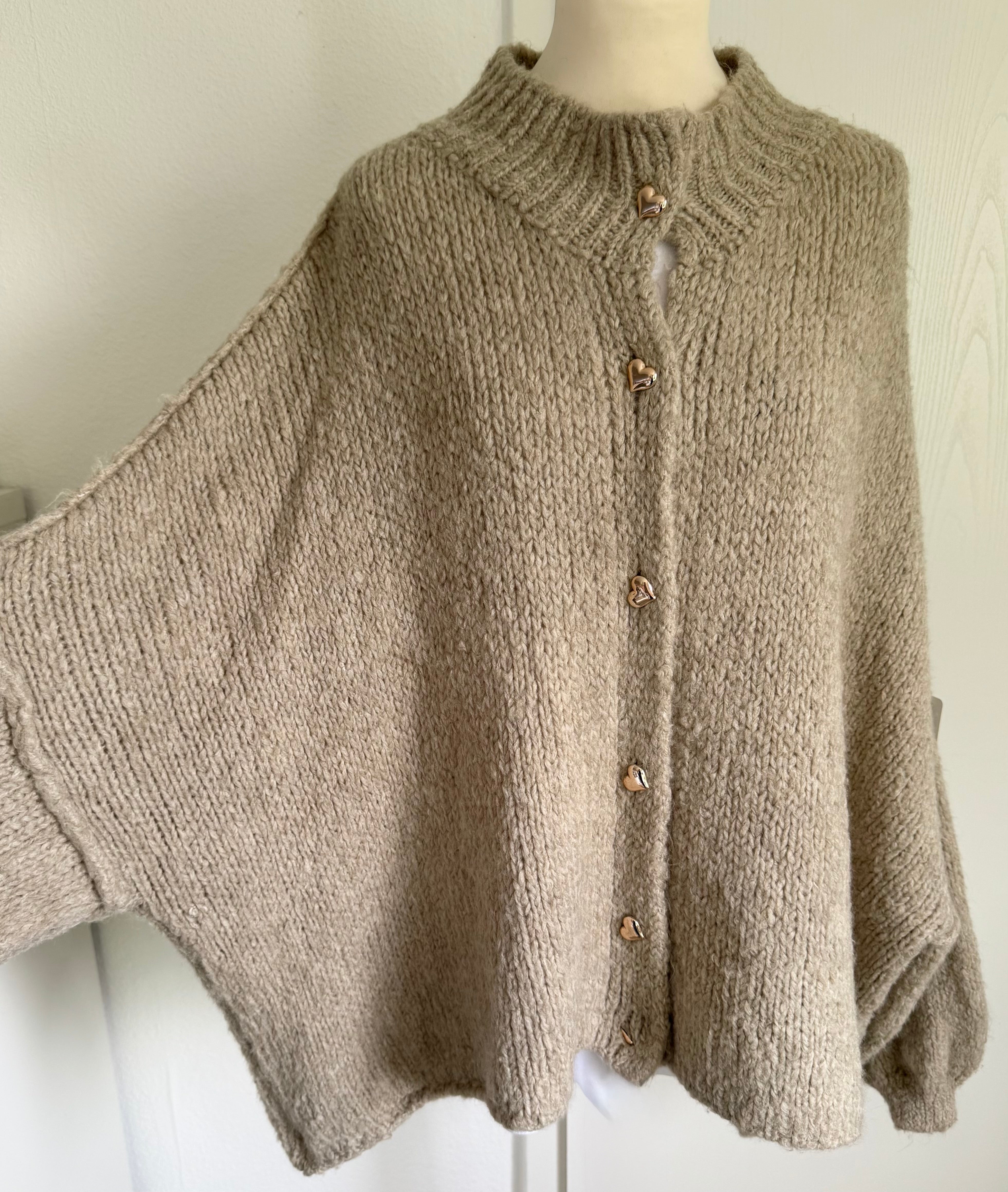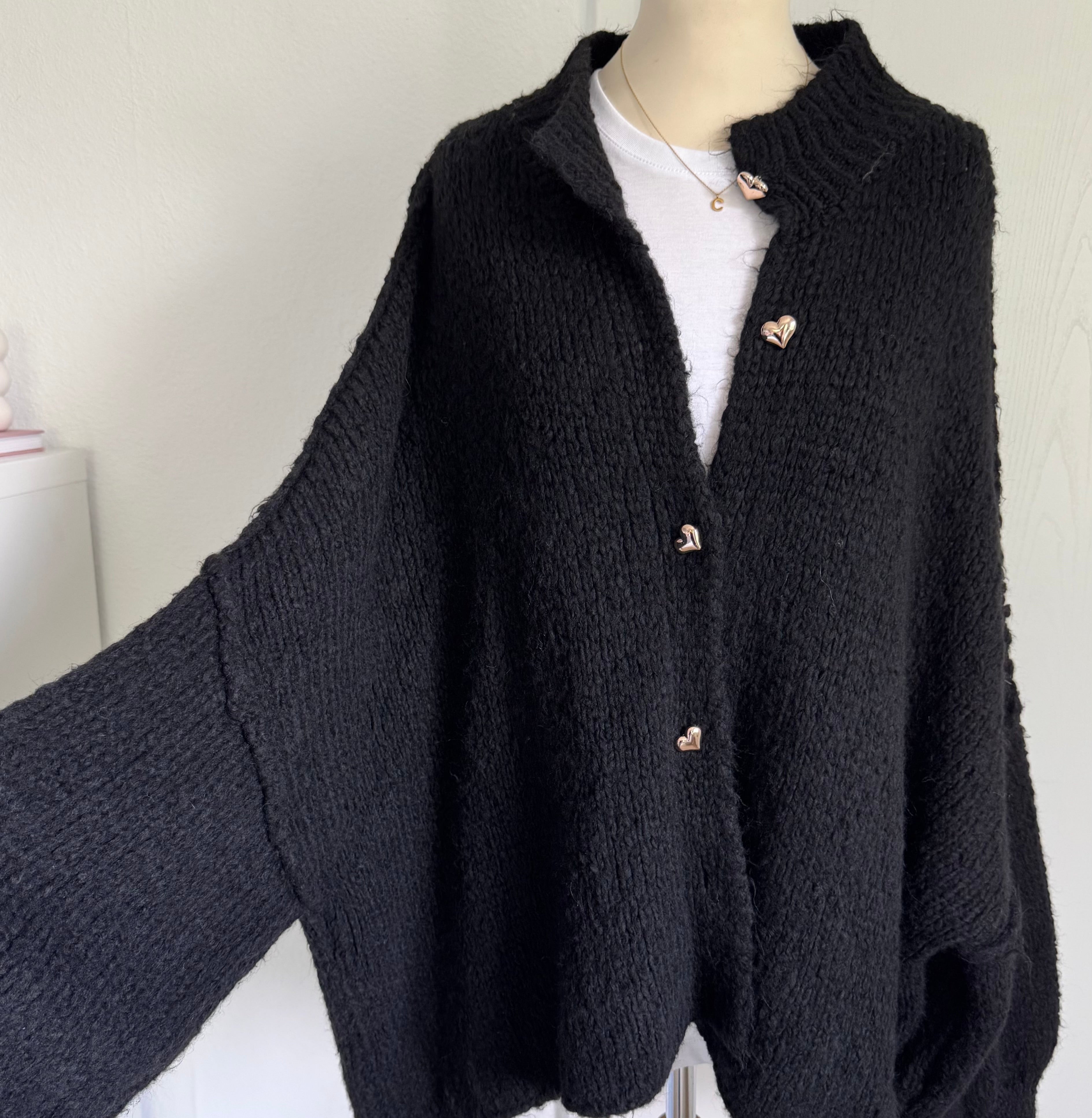 Wunderbar kuschelweicher Cardigan mit goldfarbenen Herz-Knöpfen,
